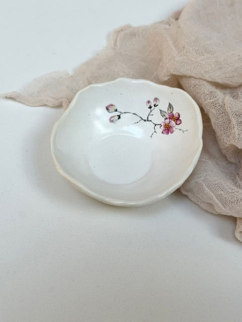 Blue and White Cherry Blossom Jar with Tan Leather Handle