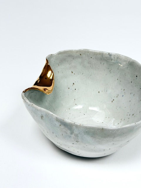 Light Blue Speckle Bowl with Gold Fold