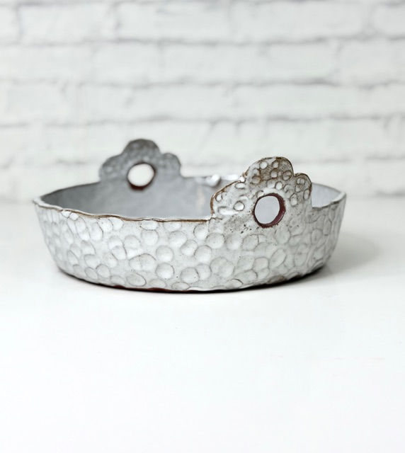 Rustic White Salt Jar with Real Gold and a Leather Handle